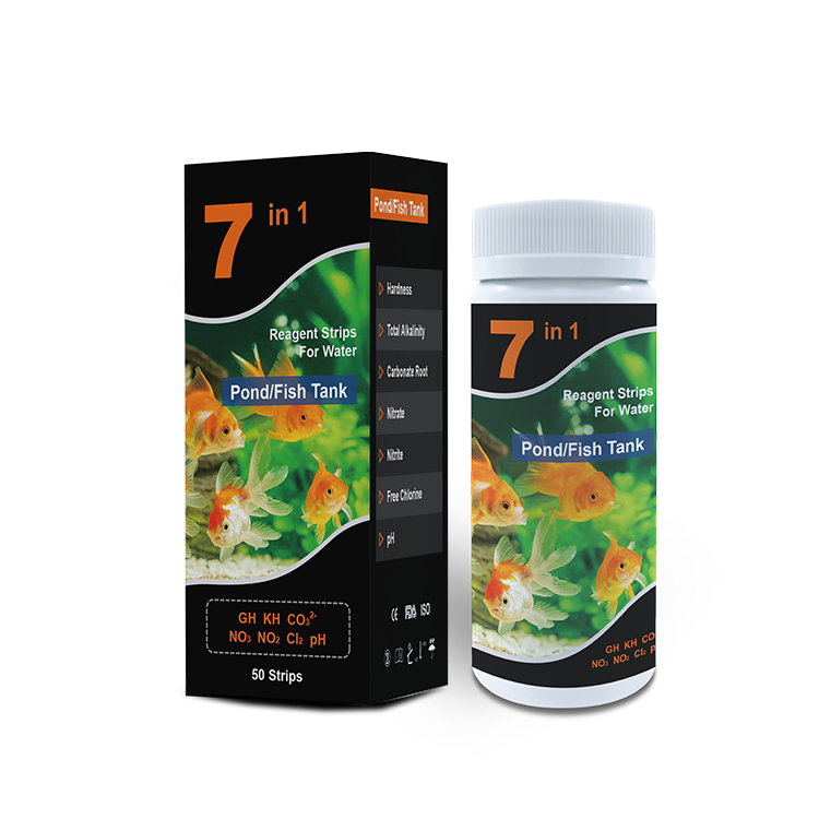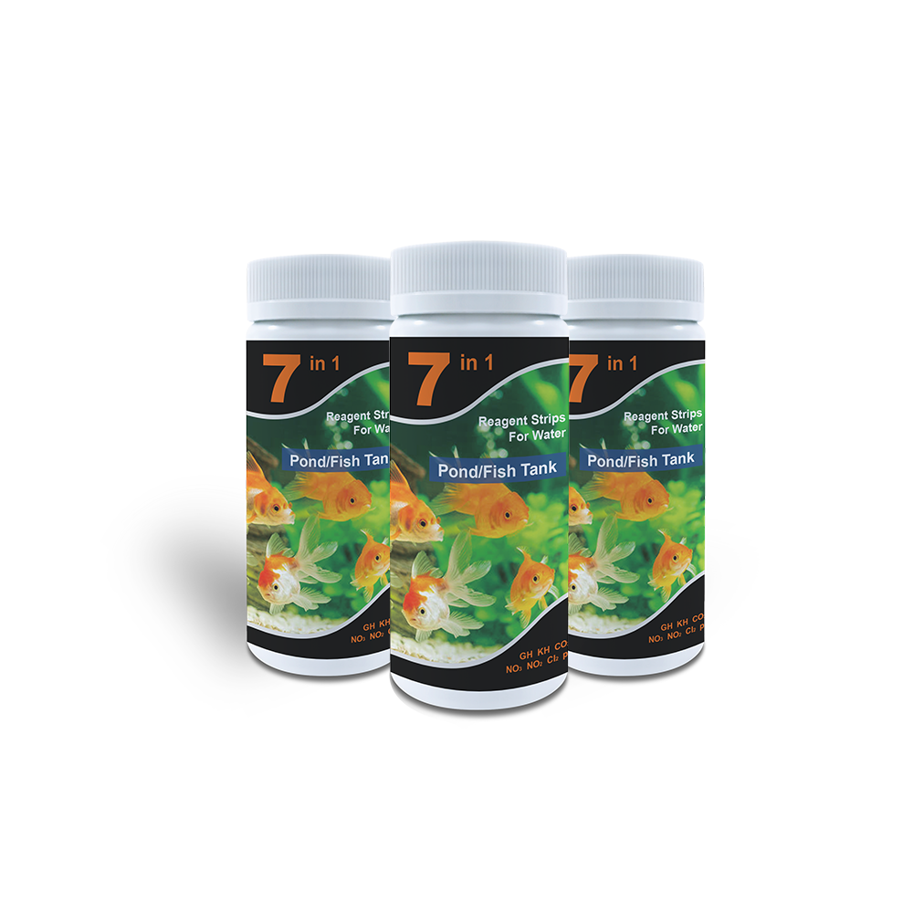 Our fish tank strips total have 7 elements: Carbonate, pH, Hardness, Total Chlorine, Free Chlorine, Nitrate, Nitrite, testing your fish tank if it is healthy water.
