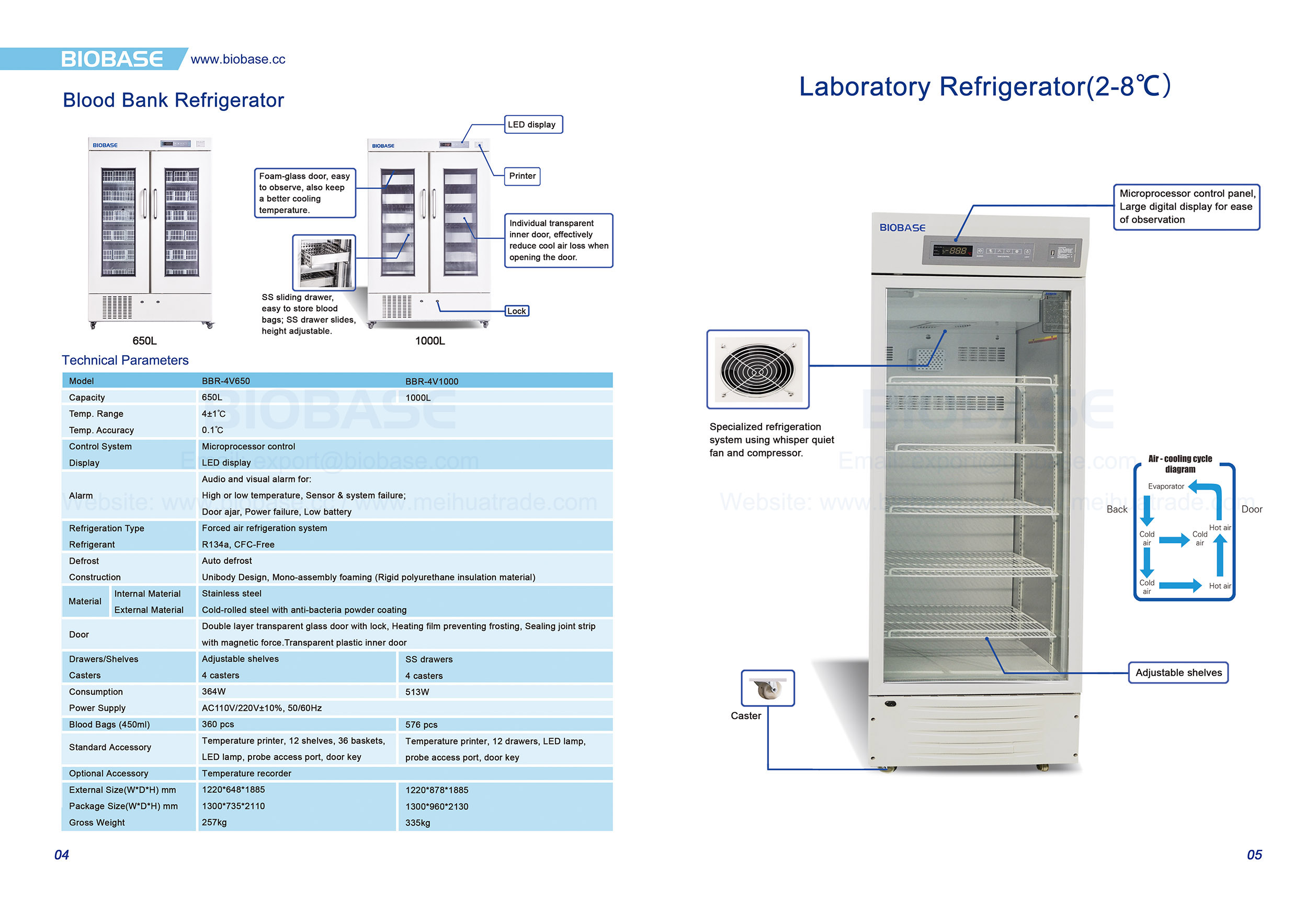 Blood bank refrigerator series products are applied to places needing storage at constant temperature, such as hospitals, epidemic prevention stations, blood banks, scientific research institutions, colleges and universities, biological pharmacies, genetic engineering, entrepreneurs, etc. The storing temperature in the body can be regulated by the temperature button on the control panel. The application is convenient and the performance is reliable.