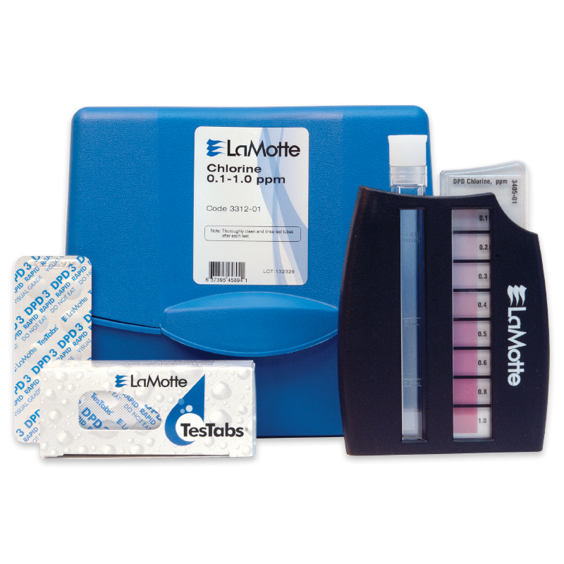 This Chlorine test kit measures Chlorine in drinking water using Chlorine DPD tablets and the Octa-Slide 2 Comparator. Range/sensitivity is 0.1 – 1.0 ppm Cl.