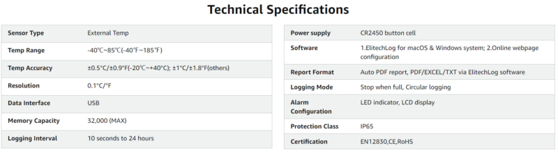 PDF Report USB Port 32000 Points With External Temperature Probe