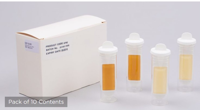 Dip Slides provide a semi-quantitative assessment of microbiological contamination that may be present in a water sample. This method can show what type ( bacterial / fungal) of microbial contaminant is present, as well as the extent of the contamination. TRUSTED + Dip Slides provide what is commonly known as a Total Viable Count (TVC), which indicates the extent of microbial growth in a Water Sample. Dip Slides can also differentiate between the types of contaminants that may be present (Bacteria, Fungi et al), and the overview they provide is considered semi-quantitative. INNOVATIVE + Anyone can easily use the kit, by simply dipping the slides into any given water-based sample. The Dip Slides can also be used for testing surfaces, and specific instructions are provided for this application. ACCURATE + The Dip Slides use the same principles as traditional culture methods, and can detect various levels of microbial contamination providing that the sample being tested is an aqueous sample. This test will NOT provide accurate results when testing Fuel or Oil Samples. DEPENDABLE + As well as being easy to use, Dip Slides are also very cost-effective. They provide a simple and cheap way of detecting microbes in water-based samples.