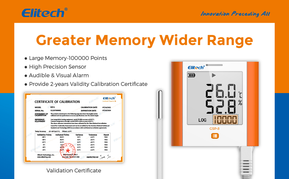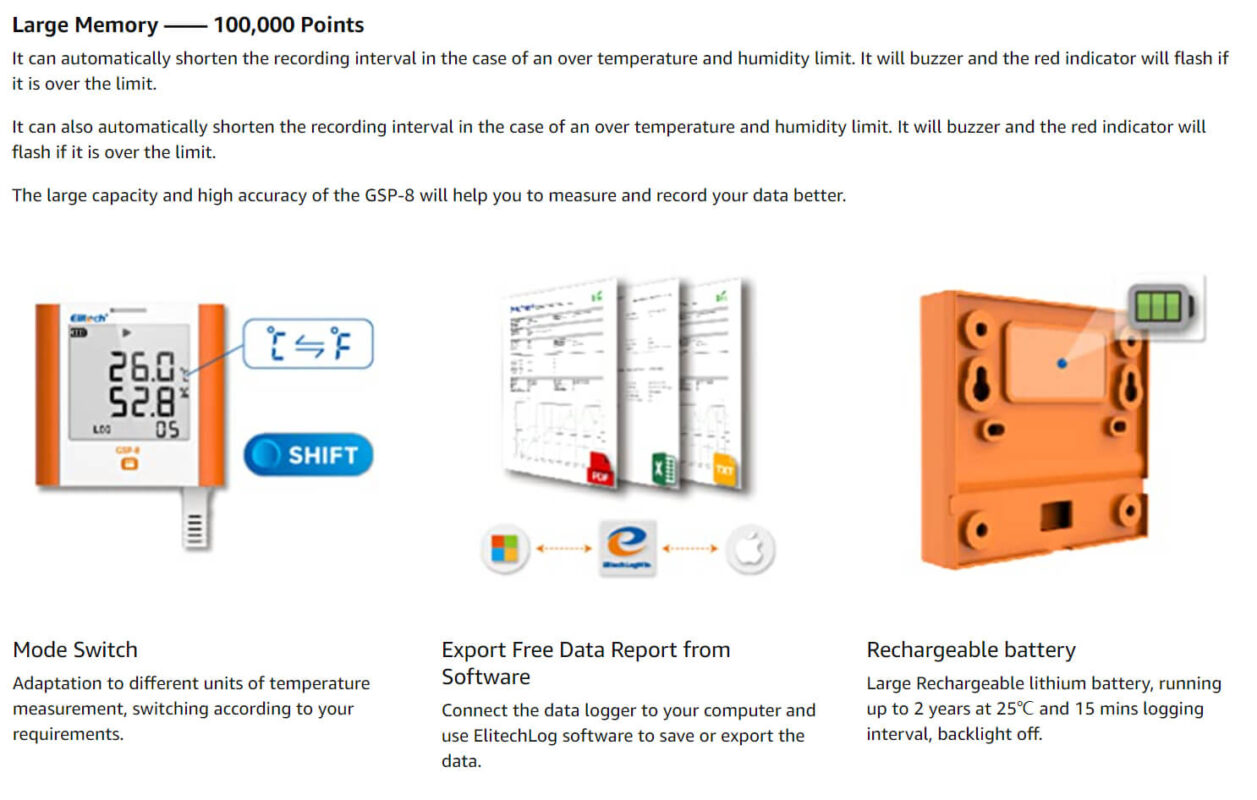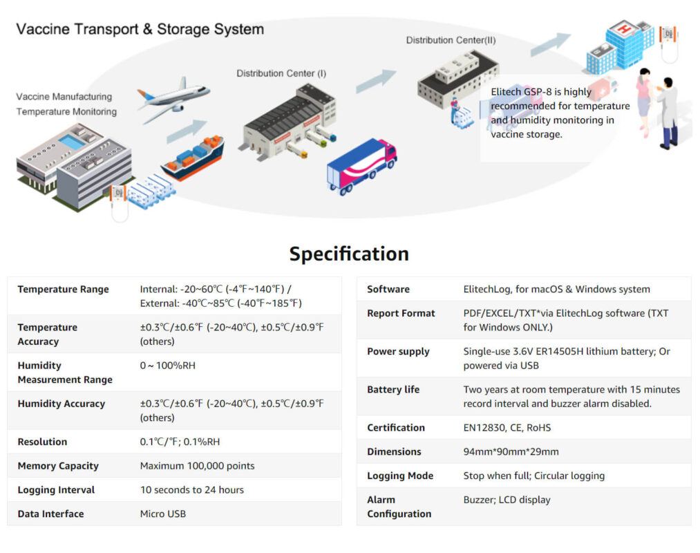 Elitech 100,000 Points Digital Temperature Humidity Data Logger Medical Refrigerator Thermometer Vaccine Fridge Temperature Monitor Max Min Average Value