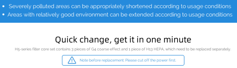 H13 Purification 99.95 % Purification Efficiency Expansion Area 11m² Matching Model H501 / H503 / H506