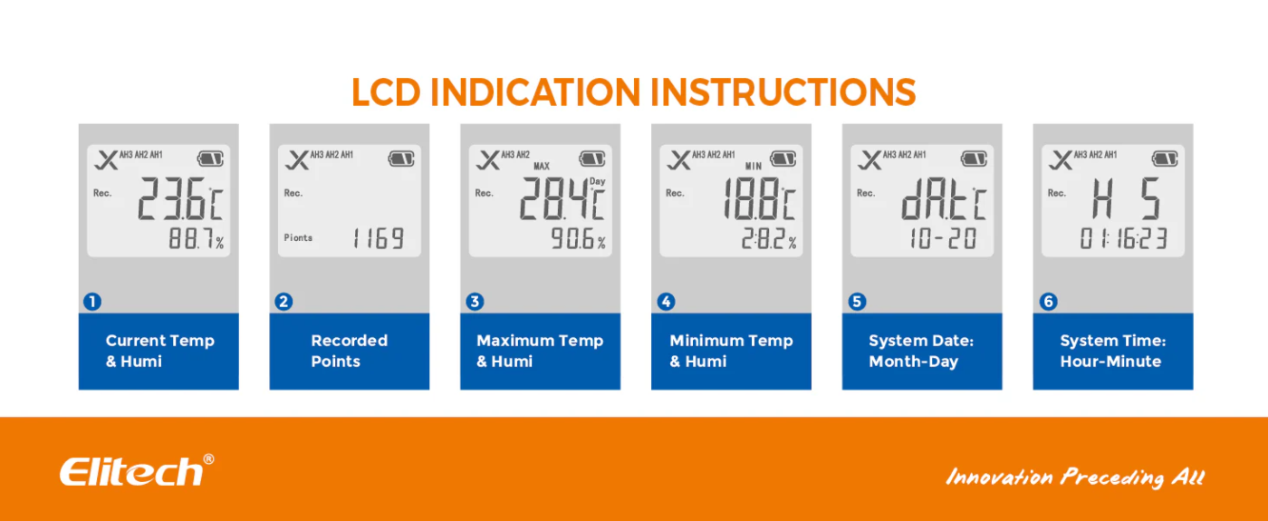 Elitech LCD Indoor/Outdoor Digital Hygrometer Thermometer With Clock And Min/Max Value