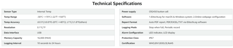 Elitech RC-4 Temperature Data Logger With External Temp Sensor Audio Alarm