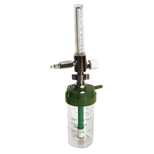 Flowmeter shows and adjusts the level of outgoing oxygen, adjustment of level of outgoing oxygen is done by a lever on the flowmeter, by turning this lever the oxygen flow can be adjusted between 0 to 15 liter/minute, this level can be seen by means of floating ball. Humidifier In order to humidify the out-going oxygen. The humidifier bottle be filled above the “Lower Level” and less than the “Upper Level” indexes with distilled water and connect it to the flowmeter plus check for proper connection.