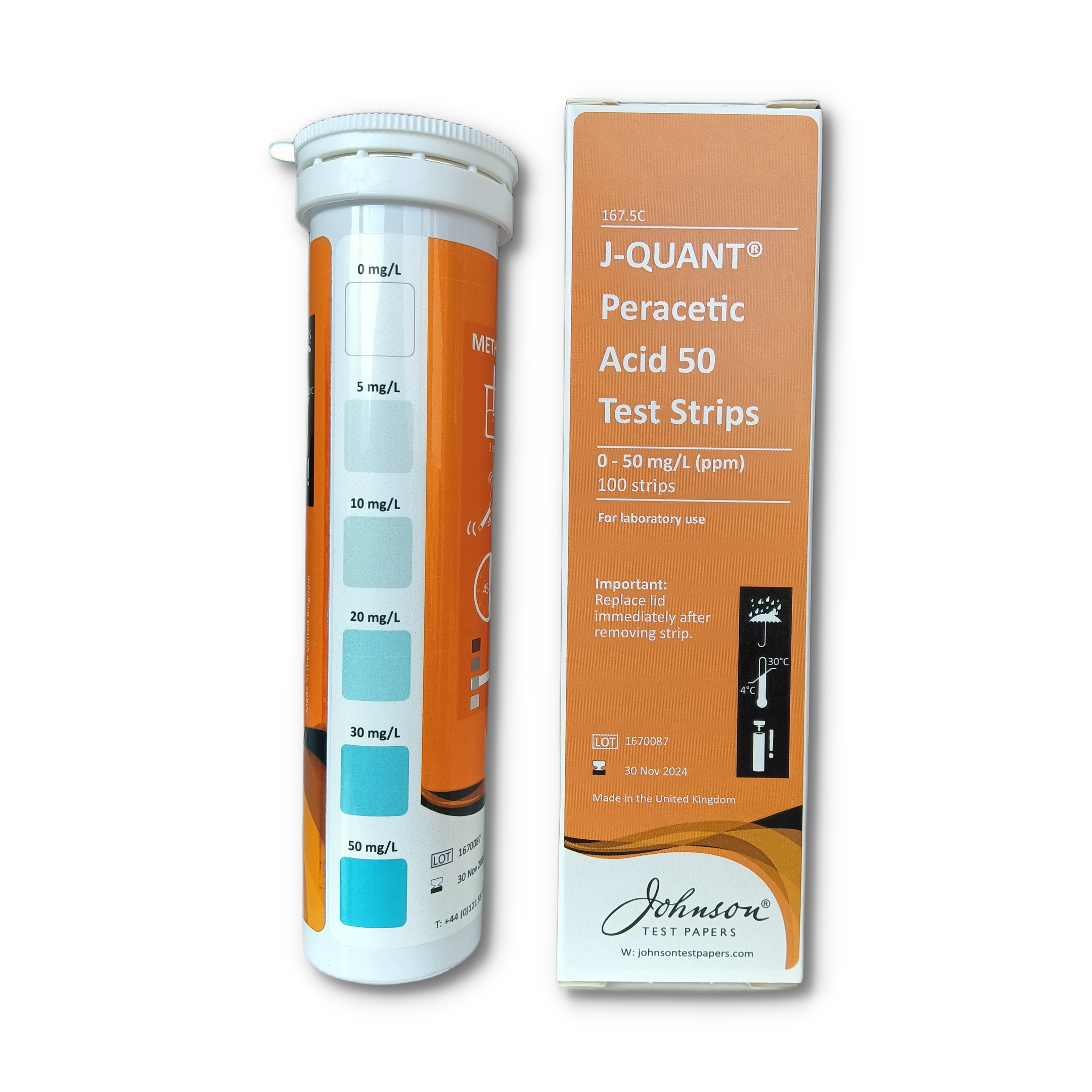 Range: 0 – 5 – 10 – 20 – 30 – 50 mg/L PAA 100 strips/pk