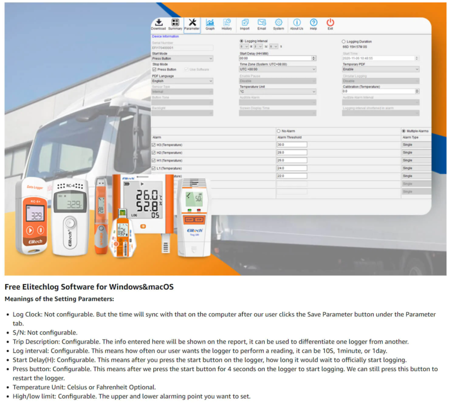 With Elitech PDF temperature data logger, you don’t require additional software to access information. Users can export data in PDF or Excel via Elitech data management software.