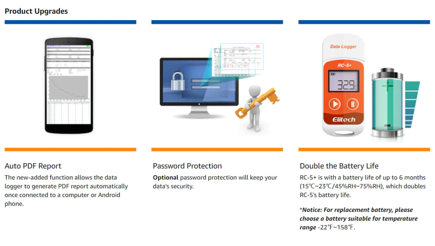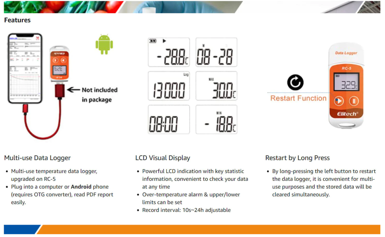 Elitech RC-4 Temperature Data Logger With External Temp Sensor Audio Alarm