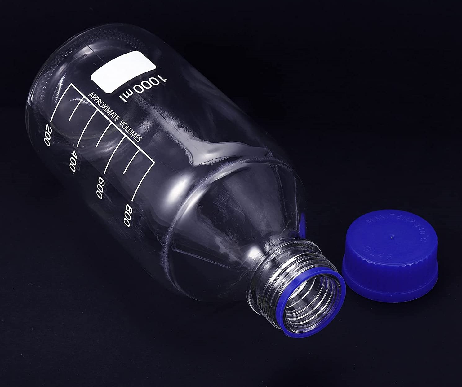 Reagent Glass Bottle Screw Cap Graduated Clear 1000ml