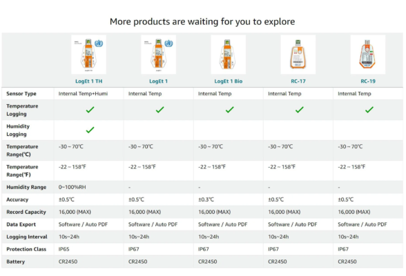 The series has LogEt 1/TH/Bio model that provides more flexible options for various applications as LogEt 1 supports temperature recording, LogEt 1 TH supports temperature and humidity recording and LogEt 1 Bio supports temperature recording with high accuracy requirements.