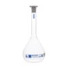 Volumetric flask made of Borosilicate 3.3 glass with single graduation mark. Fitted with chemical resistant polypropylene stopper. Class A tolerance, as per DIN ISO 1043 standard. Blue Graduation.